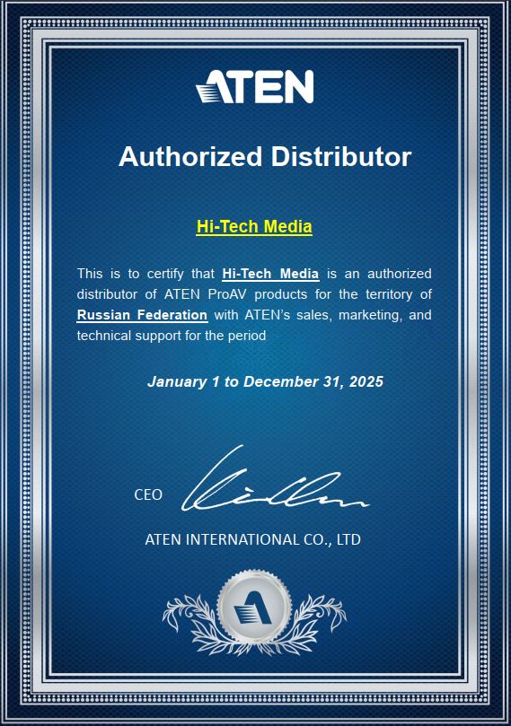 Авторизованный дистрибьютор Aten, Сертификат 2025