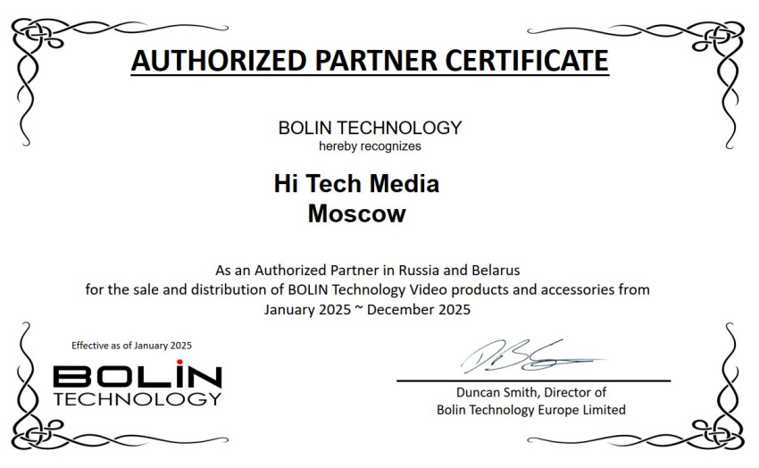 Авторизованный партнер Bolin, Сертификат 2025 год