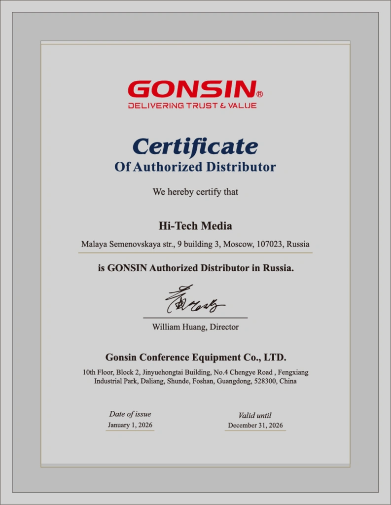 Компания GONSIN, основанная в 2003 году, является одной из ведущих в отрасли по разработке и производству цифрового конференц-оборудования. Является национальным высокотехнологичным предприятием Китая.
