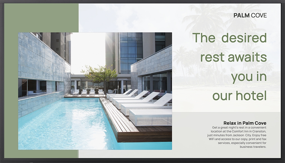 - Повышенная яркость 450 нит расширяет возможность демонстрации разнообразного контента в различных помещениях
