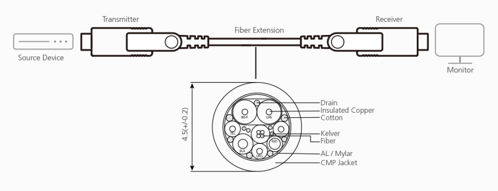 Оптический кабель VE7833A, разработан в соответствии с последними тенденциями дизайна, удобного для интеграторов и оснащен отсоединяемыми, позолоченными разъемами. Таким образом, он является идеальным решением для расширения радиуса действия систем отображения цифровой информации в самых различных средах, таких как: транспортные станции, торговые центры и больничные учреждения.