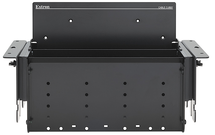 Архитектурный лючок Cable Cubby 1252 MS совместим с блоками питания серий AC и AC+USB для США, Европы и других крупных рынков. В комплект лючка входят опоры для подключений с регулируемой высотой для установки трёх модулей AV‑подключений AAP™ или восьми AV‑кабелей и трёх модулей сматывания кабелей Extron серии Retractor.