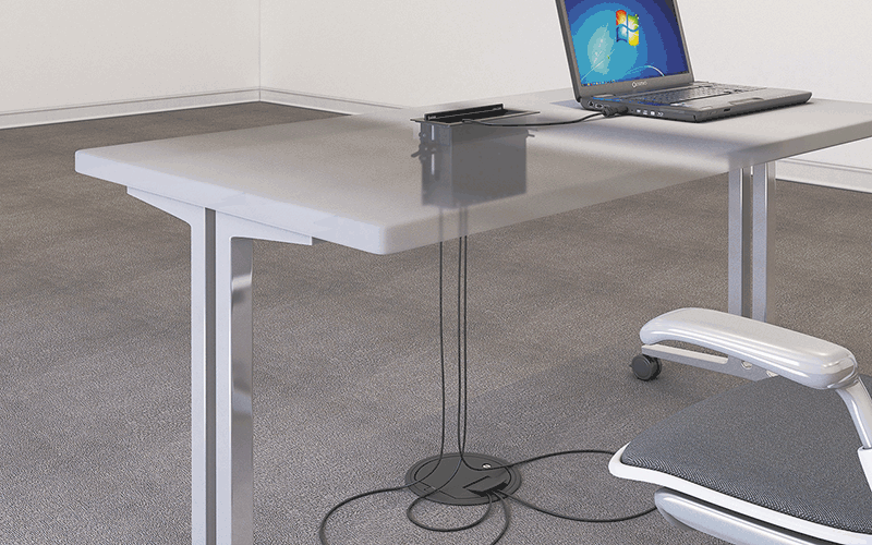 - Новинка Глубина этого узкого двойного лючка на 51 мм меньше, чем у предыдущей модели, что делает его наиболее оптимальным для использования на столах для совещаний и работы, кафедрах и в других рабочих зонах с ограниченным свободным местом — низкопрофильная конструкция идеально подходит для гибких модульных проектов с раскладными столами.