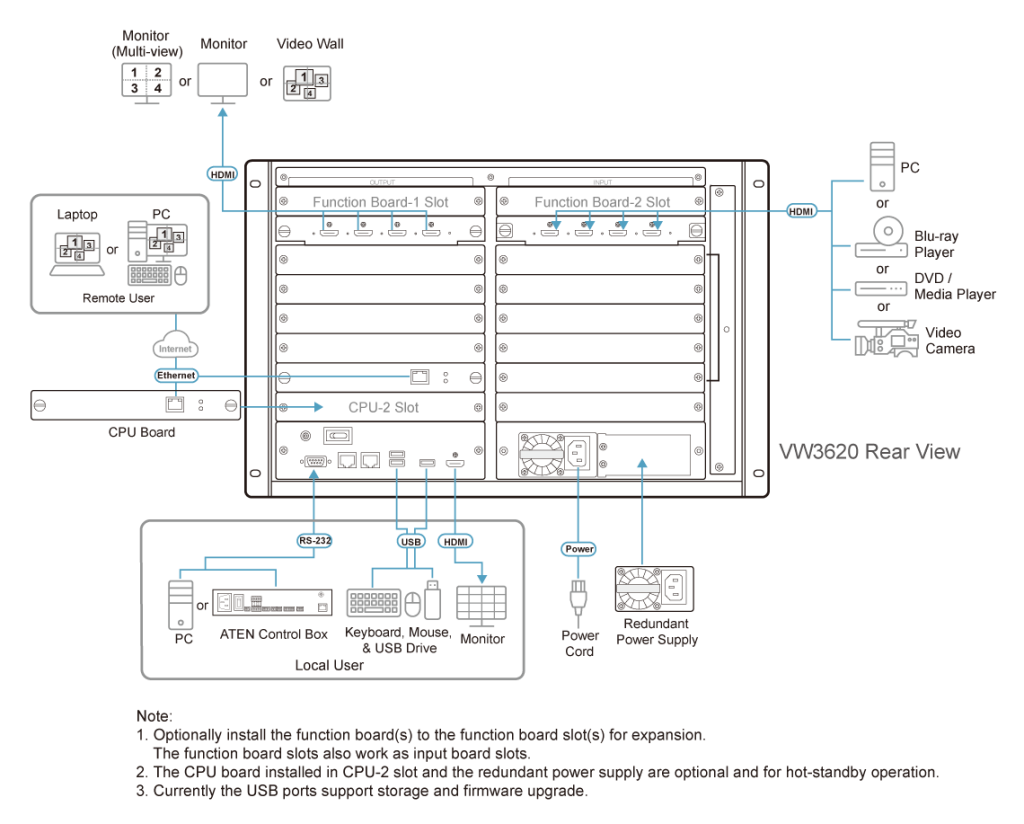 Модель ATEN VW3620 специально разработана для соответствия все более строгим требованиям к производительности системы в критически важных применениях. VW3620, это модульный процессор для видеостен с поддержкой 4K, высотой 7U, с 7 слотами ввода, 5 слотами вывода и 2 слотами для функциональных плат, которые также могут использоваться в качестве слотов для плат ввода. Он поддерживает до 36 источников входного сигнала и 20 терминалов отображения, без задержек обрабатывая сигналы от 4K-источников. Усовершенствованная технология масштабирования 4K при 60 Гц 4:4:4 совместно с возможностью обработки сигнала позволяют VW3620 передавать удивительно точное изображение уровня True 4K. Повышенная надежность работы достигается за счет двойных модулей питания, а также поддерживающих горячую замену карт ввода/вывода, модуля охлаждающего вентилятора и платы процессора управления, допускающую резервирование. Благодаря этому VW3620 гарантирует круглосуточную работу и простоту обслуживания в сценариях использования, не допускающих сбои или отключения системы.