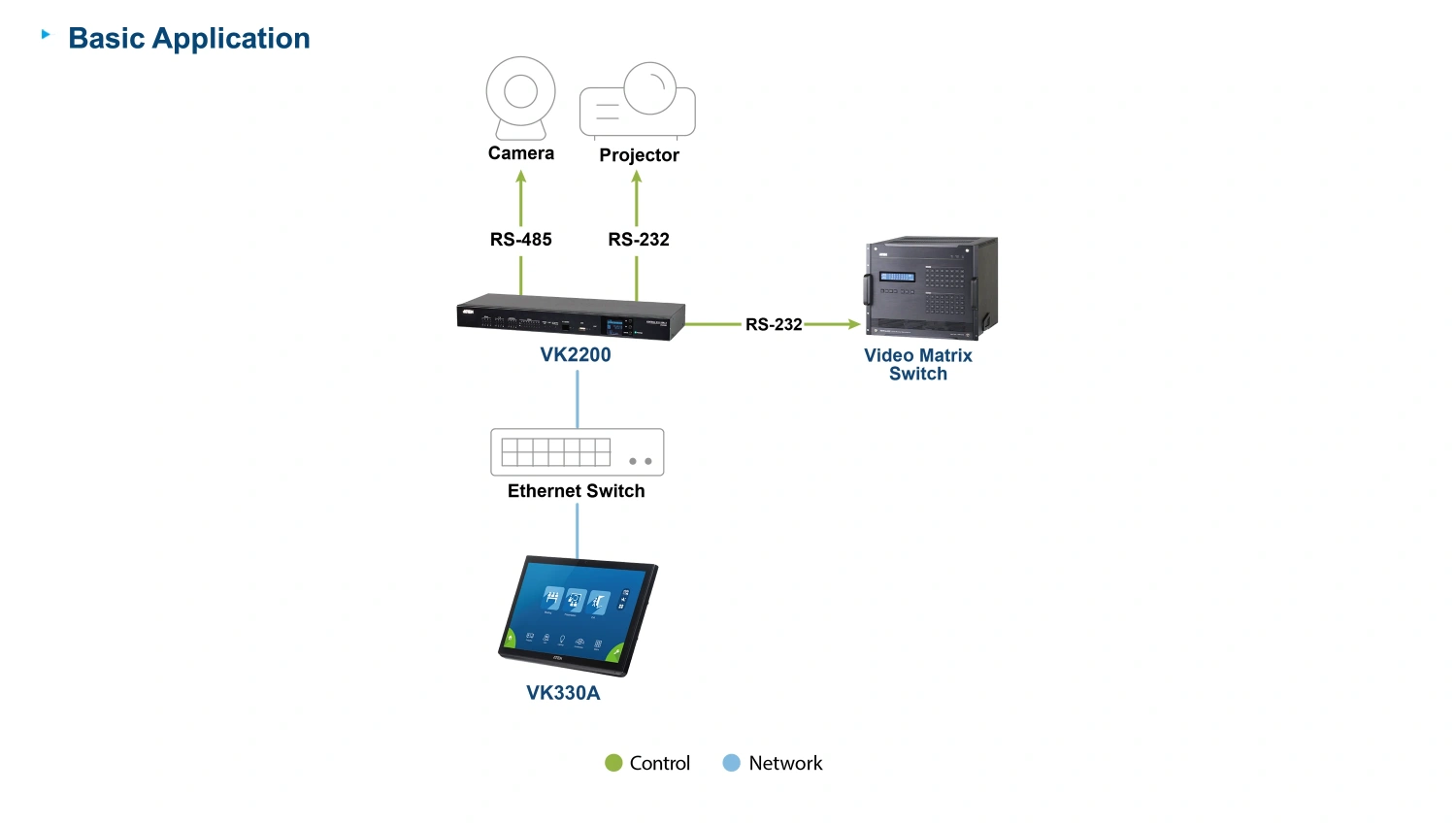 Помимо взаимодействия с системой управления ATEN, VK330A также может служить служит выделенной сенсорной панелью для запуска сторонних приложений, таких как видеоконференции, управление устройствами или приложения для пользовательских комнат, обеспечивая прямое управление без отдельного контроллера.