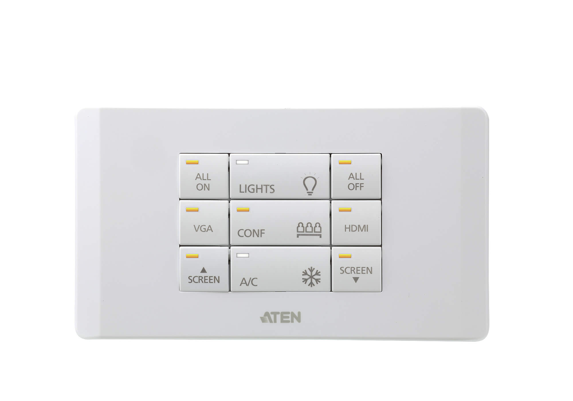 ATEN VK112EU, это полностью настраиваемый 12-кнопочный блок клавиш (клавиатура), предназначенный для использования с системой управления оборудованием от компании ATEN (ATEN Control System). Обладая стандартной настенной лицевой панелью блок управляющих клавиш осуществляет функции интерфейса управления устройствами, расположенными в помещении. Заложенная разработчиками гибкость конфигурирования позволяет пользователю, с легкостью подобной конструктору Lego, создавать до 125 различных комбинаций, содержащих от 6 до 12 кнопок. При подключении клавиатуры VK112EU к блоку управления VK2100/VK1100 по локальной сети, используя программное обеспечение VK6000, можно без труда выполнить настройку предпочитаемого управления любым подключенным устройством. По завершению настройки кнопок Вы получаете мгновенное и умное управление оборудованием с одной или нескольких клавиатур, позволяющих взаимодействовать с любым устройством, расположенным в помещении. 12-кнопочный блок управляющих клавиш VK112EU, это весьма доступное решение, которое идеально подходит для использования в качестве основного интерфейса в небольших переговорных или в качестве дополнительного устройства управления в аудиториях и конференц-центрах.