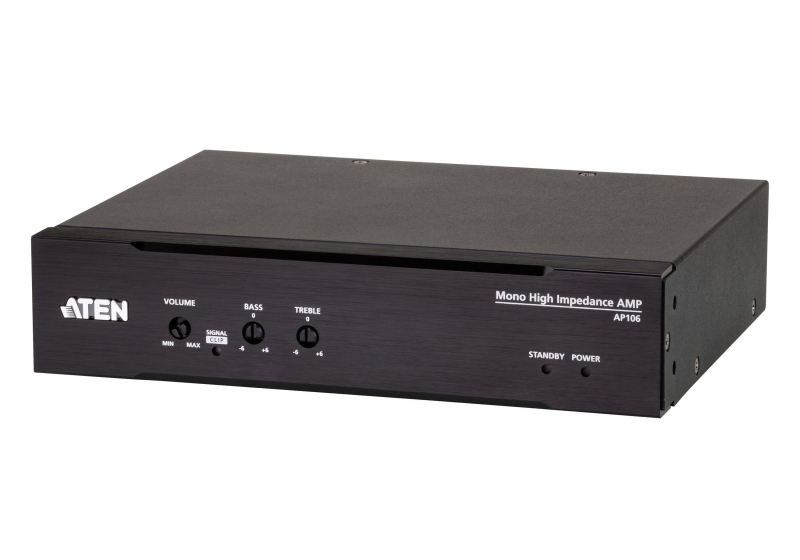 Усилитель звука модели AP106, обладает мощностью 60 Вт, оснащен высокоомным выходом и способен работать с аудиосистемами 70 В / 100 В. Поддержка балансных / небалансных линейных входов обеспечивает превосходное качество звука и предоставляет гибкость в установке. Помимо общей функции регулировки громкости в устройство встроен 2-полосный полочный эквалайзер. Он обеспечивает усиление/гашение высоких и низких частот в диапазоне ± 6 дБ, предлагая гибкую настройку тона и универсальность управления. Дополнительный запас мощности усилителя AP106 гарантирует передачу звука без искажений.