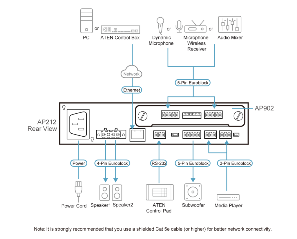 - Предназначена для использования с усилителями мощности серии AP DSP компании ATEN