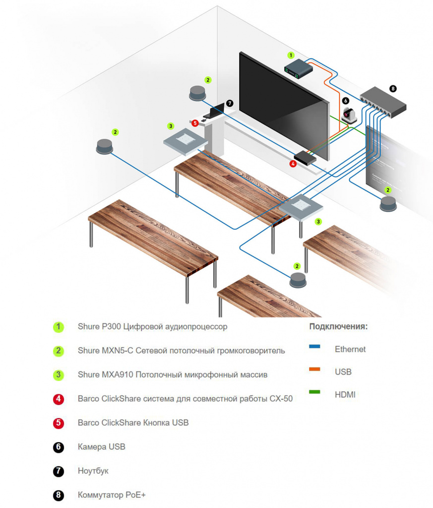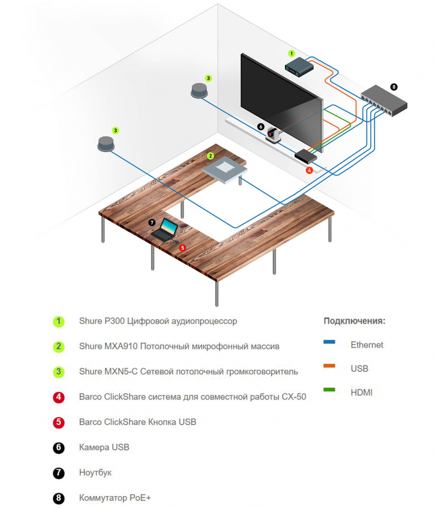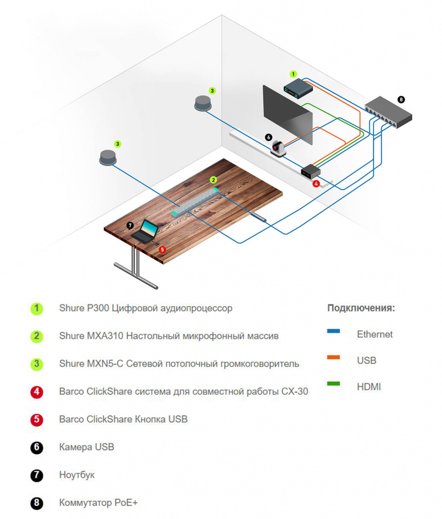«Ваши клиенты, будь то студенты или руководители коммерческих структур, за счет использования высококачественных беспроводных микрофонов от Shure и конференц-системы от Barco ClickShare будут чувствовать себя так, как будто они находятся в одной комнате с собеседником».Shure и ClickShare также легко адаптируются под работу с ведущими сторонними платформами для видеоконференцсвязи, таких как Zoom, Microsoft Teams, Cisco Webex и бесконечное множество других программ подобного типа.