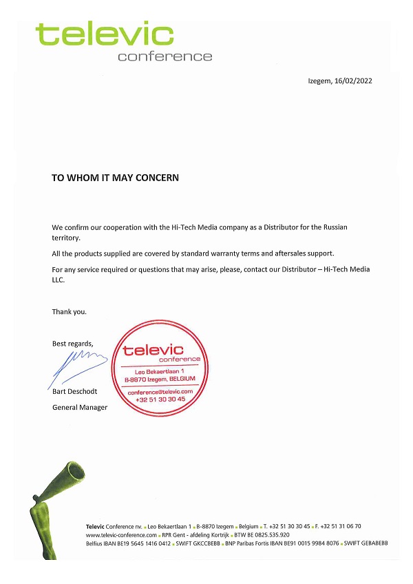 Компания Televic Conference – это всемирно известный бельгийский производитель конференц-систем с более чем 70-летней историей.