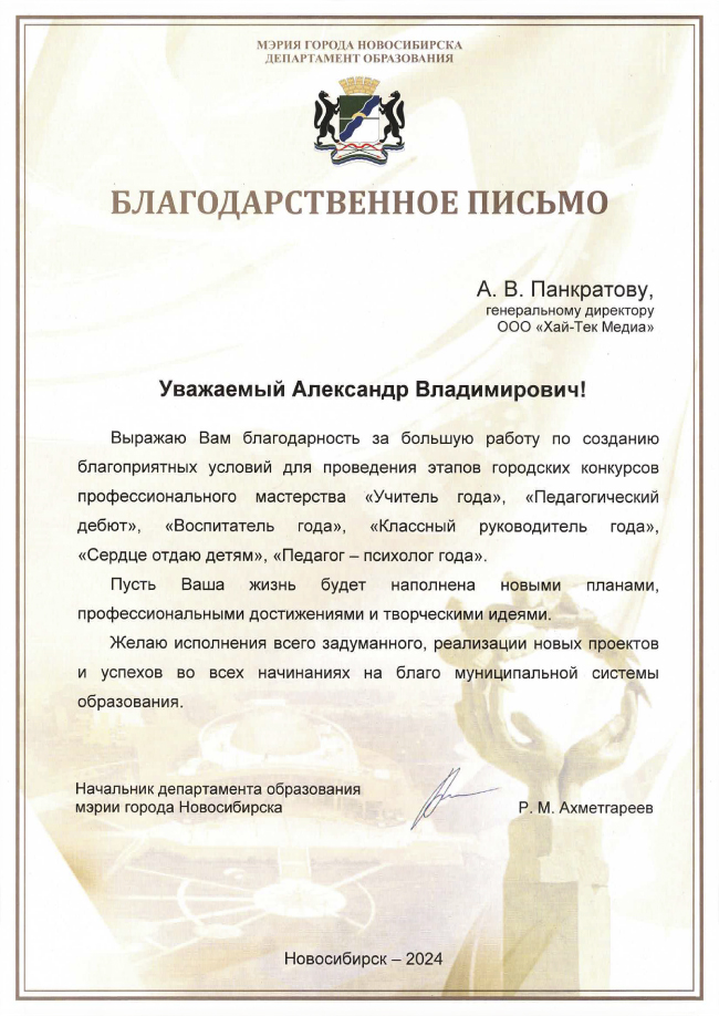 «В Hi-Tech Media считают важным не только развитие мультимедийного комплекса в учебных заведениях, который выводит эффективность обучения на новый уровень, но и мотивации наиболее талантливых педагогов», – комментирует Степан Вангниц, коммерческий директор Hi-Tech Media. «Создание благоприятной среды для учителей способствует развитию интеллектуальных ресурсов нашей страны, и нам приятно быть причастными к этому процессу».
